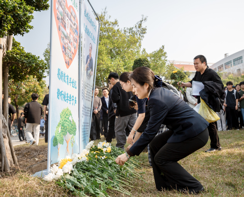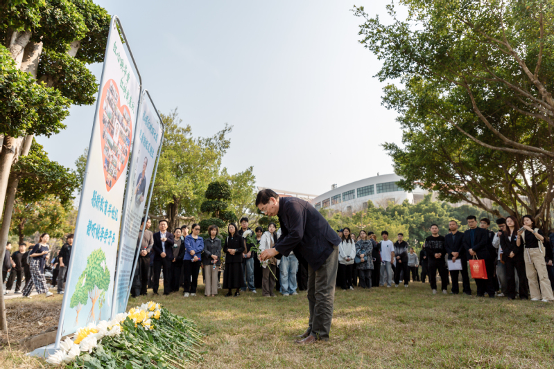 追思会的尾声,一场温馨而庄重的“重走卢昌义教授校园足迹”徒步活动及献花仪式缓缓展开。在周亮老师深情而细致的引导下,全体与会人员手执白菊花、黄菊花,步伐沉重却满怀敬意,沿着卢教授生前在校园里留下的温暖足迹,缓缓前行。每一步都仿佛在与卢教授进行跨越时空的对话,每一处都承载着对卢教授无尽的思念与缅怀。在“欣欣向荣”榕树林等缅怀地点,大家纷纷停下脚步,静静地献上手中的鲜花,让花香与哀思交织,共同寄托对卢教授的深切怀念与崇高敬意。