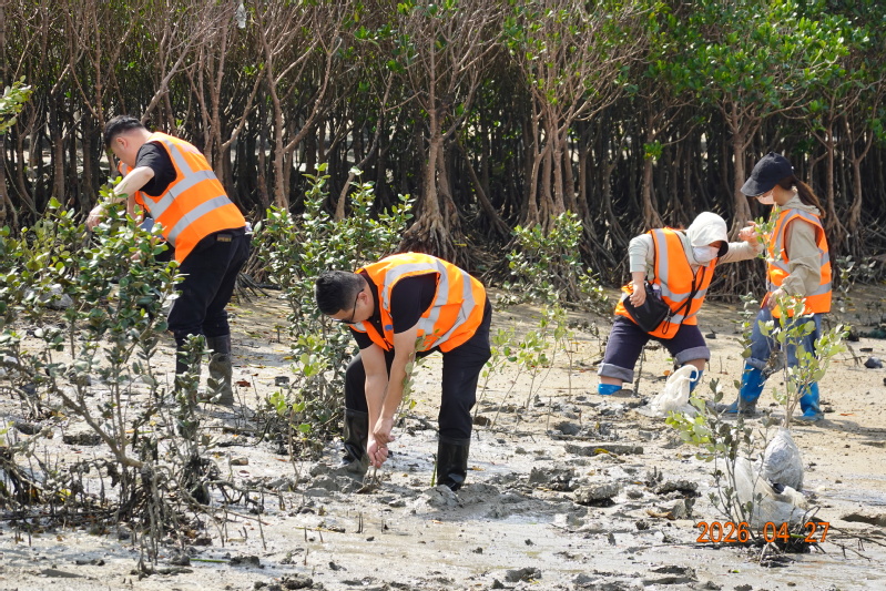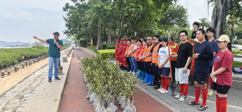 校方代表、环境科学与工程学院党总支书记周亮表示,学院长期聚焦海洋生态研究,此次活动将学术成果转化为实践行动,为学生提供了生动的生态教育课堂。河口生态安全与环境健康重点实验室执行主任陈慧杰主持活动,并在“红树林小课堂”中向志愿者们科普红树林基本知识及固碳释氧、净化水质等生态价值,现场演示科学种植方法。
